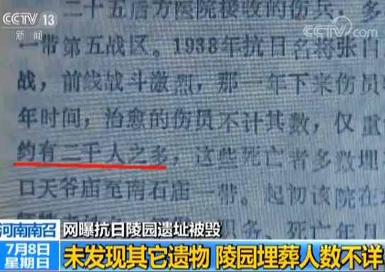 就在节目播出之前,记者得到消息,南召县联合调查组经过调查确认,证实了南召县云阳镇的这个施工现场就是当时抗日阵亡将士陵园遗址。但是,在调查中,现场并未出土能够证明这些骨骸身份的物品。而县志中记载埋葬在陵园中的人数也无法确认,网友发布的埋葬阵亡将士数字仍无从考证。