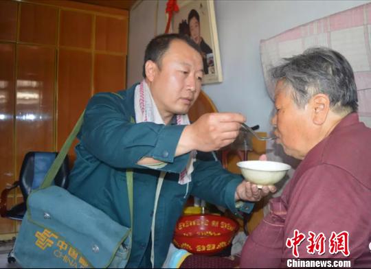 大同市浑源县邮政局步班投递员徐海龙每年春秋两季定时帮老人从县城买药。 鸿远 摄