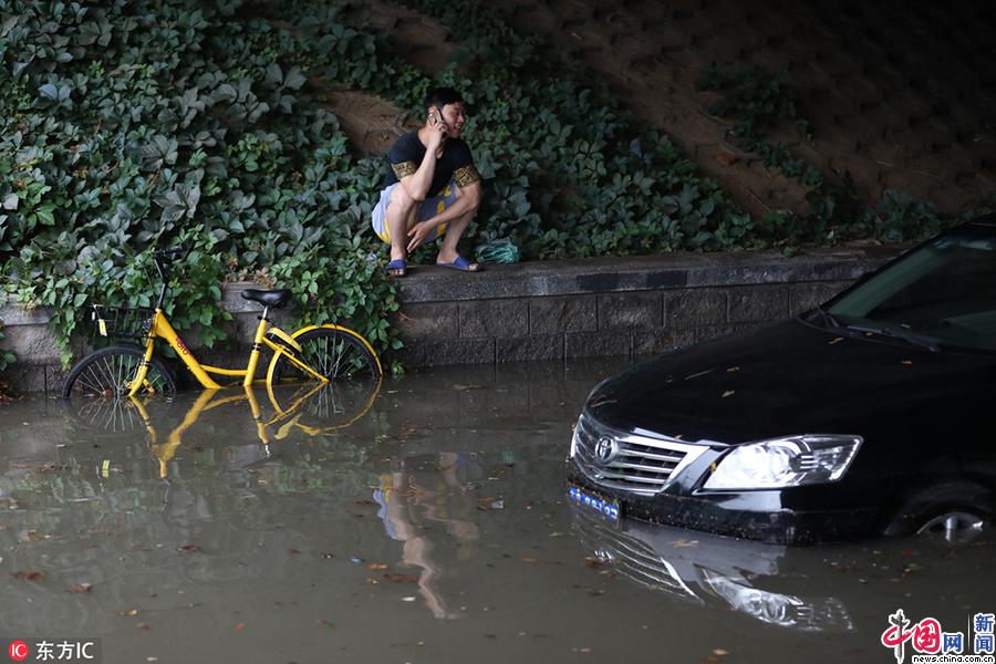 15日20时至16日10时,全市平均降雨量36.6毫米,城区平均41.3毫米,最大降雨出现在密云张家坟(水文站)310毫米。图为北京回龙观,地铁站旁桥下多车被淹没,车主站在安全的地点等待救援。(图片来源:东方IC)