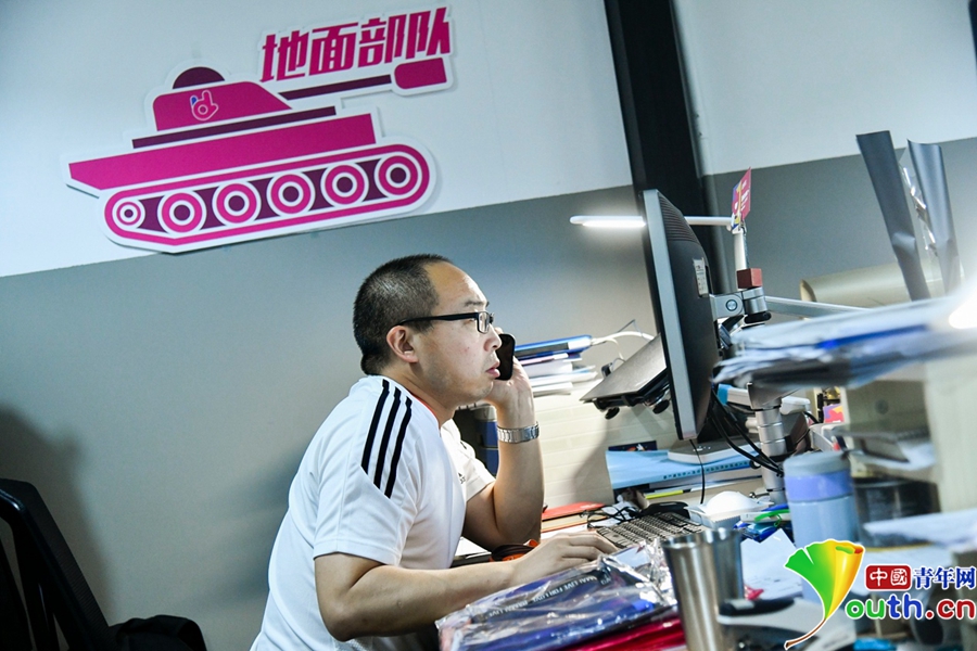 办公室的老段也是闲不住的。每天有接不完的电话,工作仿佛也只有三个频率:接电话、打电话、处理邮件。工位周围随处可见的军事元素,显示出工作狂也有爱好。摄影/徐成