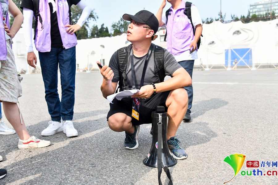 7月14日下午3点,北京三里屯的工人体育场被高温笼罩着,烤的人难受,4个小时后,薛之谦“摩天大楼”2018巡回演唱会首场演出将在这里举行。老段的徒弟小果先到达了现场开始做准备工作。摄影/徐成