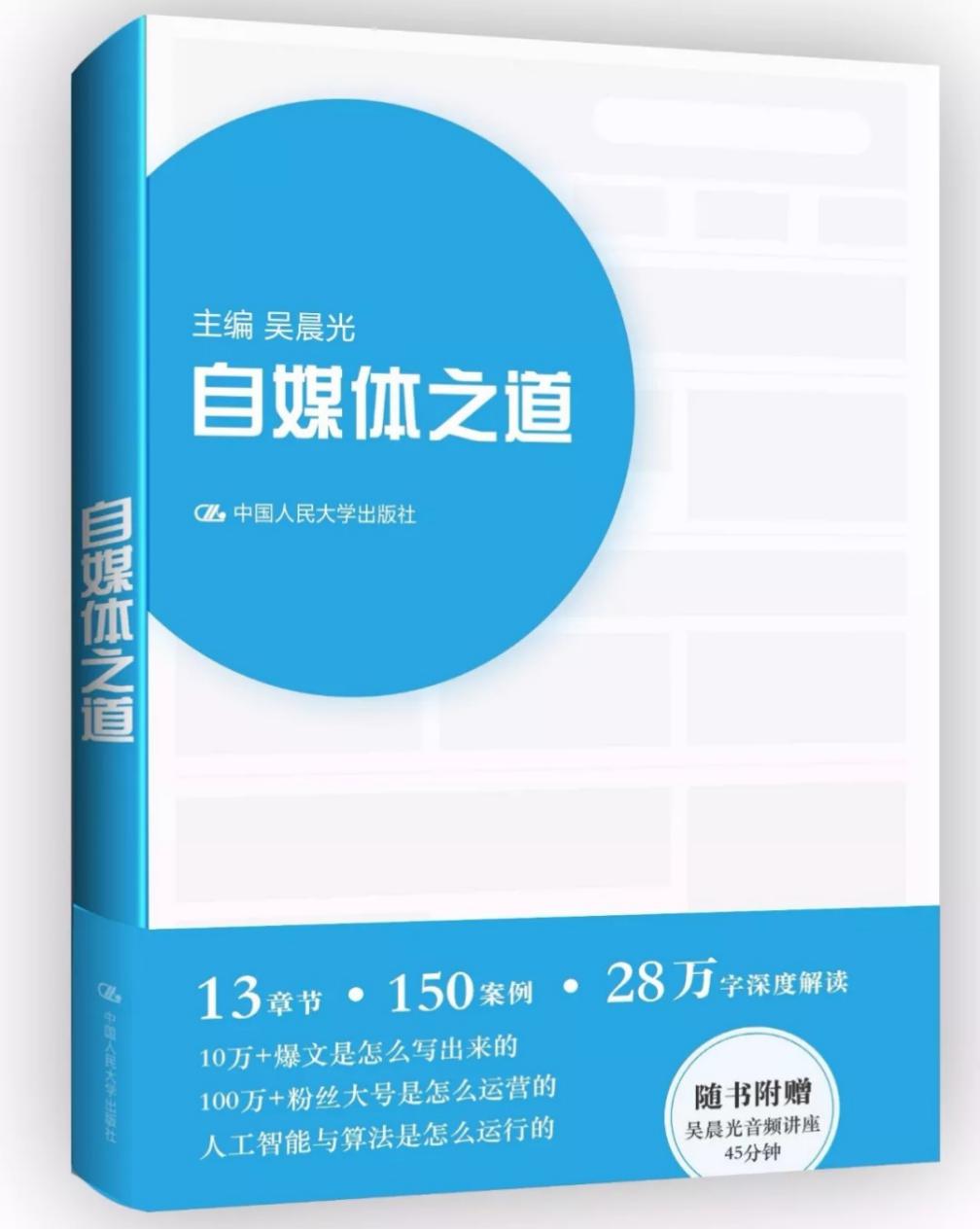 据吴晨光介绍,《自媒体之道》全书超过28万字,分上、下两编共13章,详解案例150多个——其中包括4个独立成章的深度案例,提炼“锦囊妙句”36条。他还透露,该书编写跨度3年,并会在书中附赠自己45分钟的音频课程。记者注意到,该书由南香红、牛弹琴、六神磊磊读金庸、市值风云、摩登中产、白兰、范吉鹏、等资深媒体人和知名自媒体人参与编写。