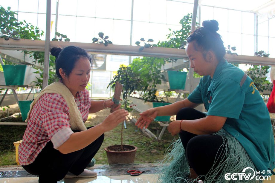 员工们正忙着为大棚内的设施布展。