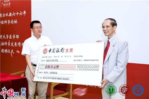 韩济生、朱秀媛夫妇向北京大学医学部捐赠100万元用于脑科学发展项目。(主办方供图)