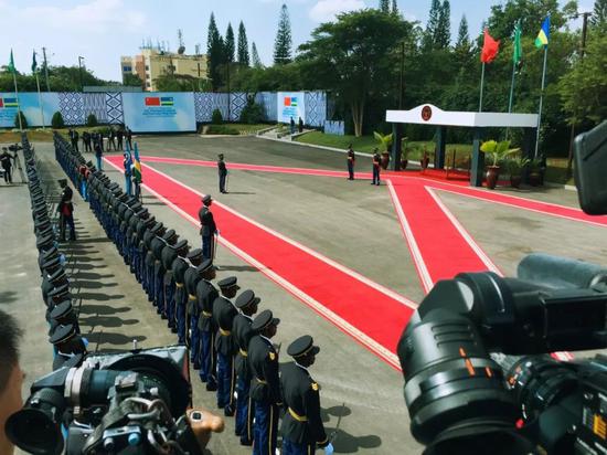 7月23日上午,卡加梅总统在总统府前广场为习主席举行了盛大的欢迎仪式。