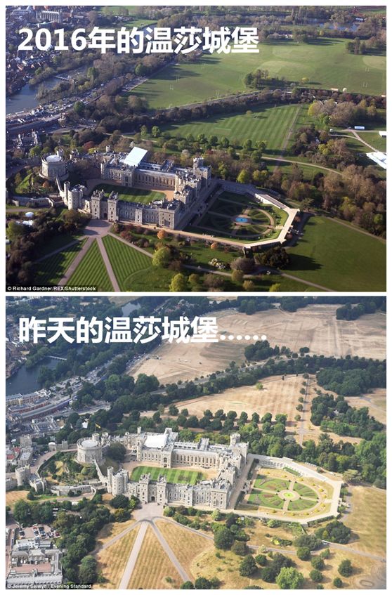 英国《快报》称,这是英国350年以来最热的一个夏天。更令英国人崩溃的是,由于没经历过这种高温,连英国王室的家族城堡——温莎城堡门口草都枯萎了……