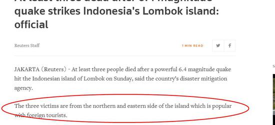此前,当地建筑物受到地震严重破坏,路透社援引印尼减灾机构官员的话称,地震已经导致至少3人死亡。报道称,这三名受害者来自该岛的北部和东部,该岛受到外国游客的欢迎。报道未明确提及遇难者国籍信息。