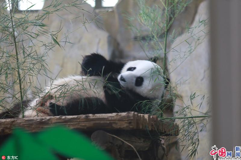 济南36℃酷暑难耐 大熊猫抱着冰块不撒爪!(   / 5 )
