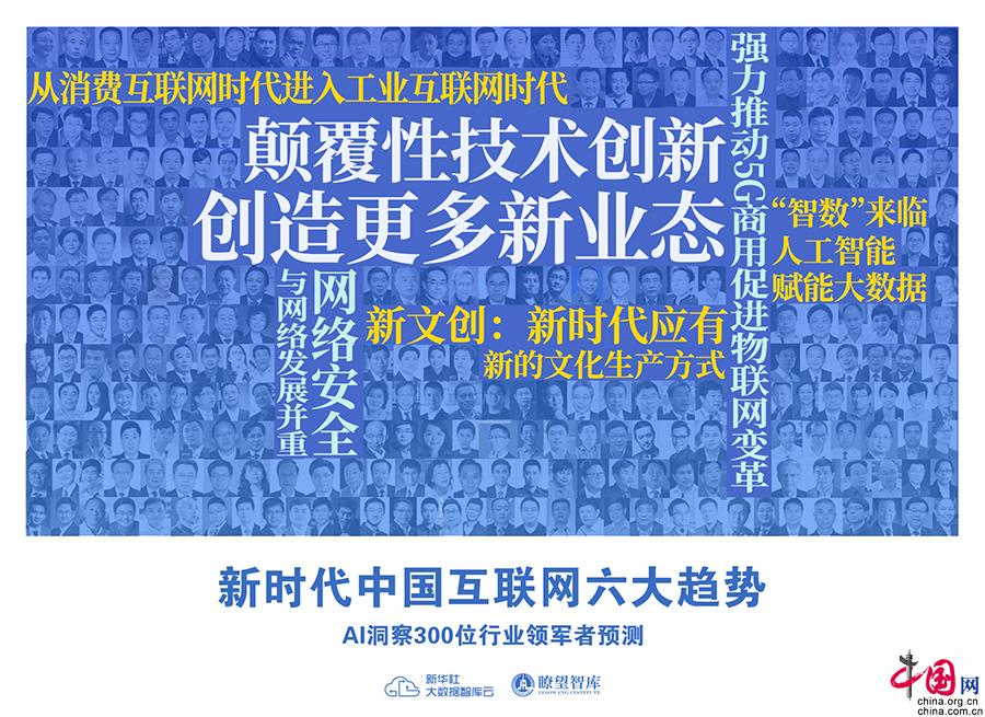 8月8日,瞭望智库发布了人工智能基于300位行业领军人物相关言论而预测的中国互联网六大趋势。颠覆性技术创新催生更多新业态、网络安全与网络发展并重、从消费互联网时代进入工业互联网时代、“新文创”、“智数”、强力推动5G商用促进物联网变革,成为新时代最应关注的重大问题。