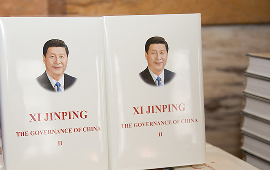 这是2018年4月11日在英国伦敦举行的《习近平谈治国理政》第二卷多语种图书首发式上拍摄的图书。新华社发(伊莎贝尔·因方特摄影)