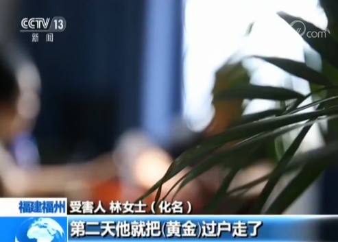 受害人 林女士:第二天他就把黄金过户走了。我去找他,他就直接跟我说,我觉得你还不起钱了,所以我要把黄金先拿走。