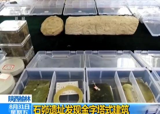 陕西省考古研究院院长 孙周勇:它是以石头层层裹砌。一个底大顶小的类似于金字塔形的大型台体。上面分布了大型宫室。青铜、石、占卜等重要祭祀或手工业生产有关的一些遗存。
