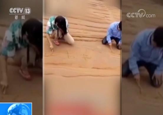 或许是担心公众不明白他们的壮举,视频发布者还附了这样一段文字:不是有一个新闻说,踩一脚要用六十年恢复,我们几个不知道踩了多少脚,我还弄了点沙子。