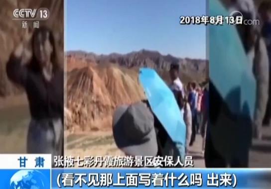 张掖七彩丹霞旅游景区管委会主任 袁得平:因为这里的游客,知道这个事,她是从护栏,刚刚翻过了护栏,我们的安保人员进行了劝阻,劝阻以后她从里面过来了,也没有造成特别大的危害,我们就进行了教育,对游客,没有进行后续的处罚。