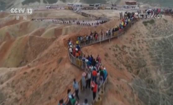 甘肃张掖七彩丹霞旅游景区工作人员 张凌龙:地质是从白垩纪时期,一直经过氧化还原反应一直到现在,然后形成的,时间较长也是属于活化石,而且它那个表皮特别脆弱,它是一个短时间内不可再生的,如果说经过自然的一个剥离,还有风吹雨打,它确实是需要60年才能恢复的。