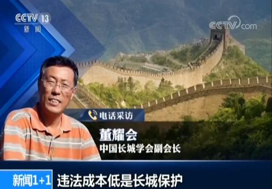 中国长城学会副会长 董耀会:违法成本低是长城保护面对问题的一个非常重要的方面,现在有关的规定本身就已经显得不够,惩戒的力度不够高,它肯定达不到政策作用。