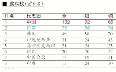从两届亚运会金牌数看,中国少了19枚,韩国少了30枚,日本则激增28枚。在未遣全部主力的情况下,日本在亚洲体坛已跃居次席,且在游泳、羽毛球、体操等项目上迫近或追上了中国队。