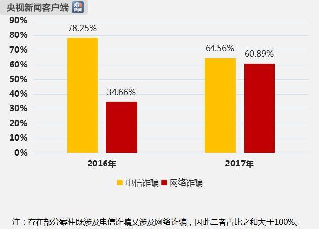 今天,最高人民法院对外发布电信网络诈骗案件司法大数据,数据显示,2017年,全国已结一审电信网络诈骗案件量较2016年上升70.34%。电信诈骗仍为主要诈骗方式,网络诈骗明显上升。2016年至2017年,电信诈骗在电信网络诈骗案件中占比有所下降,但高于网络诈骗,2016年为78.25%,2017年占64.56%。网络诈骗作为新兴的诈骗手段,占比显著上升,2016年为34.66%,2017年上升至60%以上。电信网络诈骗方式以电话诈骗为主,占全部电信网络诈骗案件的50%以上。2017年,通过网络手段进行诈骗的案件增幅显著。其中通过改号软件、微信进行诈骗的案件增幅超2倍,通过木马、钓鱼网站、语音平台进行诈骗的案件增幅超100%,远超电信网络诈骗案件总体增幅,对新型的网络诈骗手段需保持警惕。