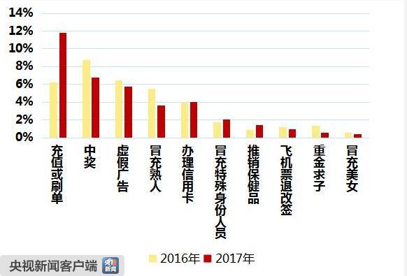 在电信网络诈骗方式上,让受害人充值或刷单是一大典型骗术,2017年在全部电信网络诈骗案件中占比显著上升。2016年,通过让受害人充值或刷单进行电信网络诈骗的案件占比为6.22%,2017年迅速上升至11.78%。另外,犯罪分子还通过欺骗受害人中奖、发布虚假广告、冒充领导、亲戚、朋友、同事等熟人关系或公检法和军人等特殊身份人员、以办理信用卡为名等骗术进行电信网络诈骗。