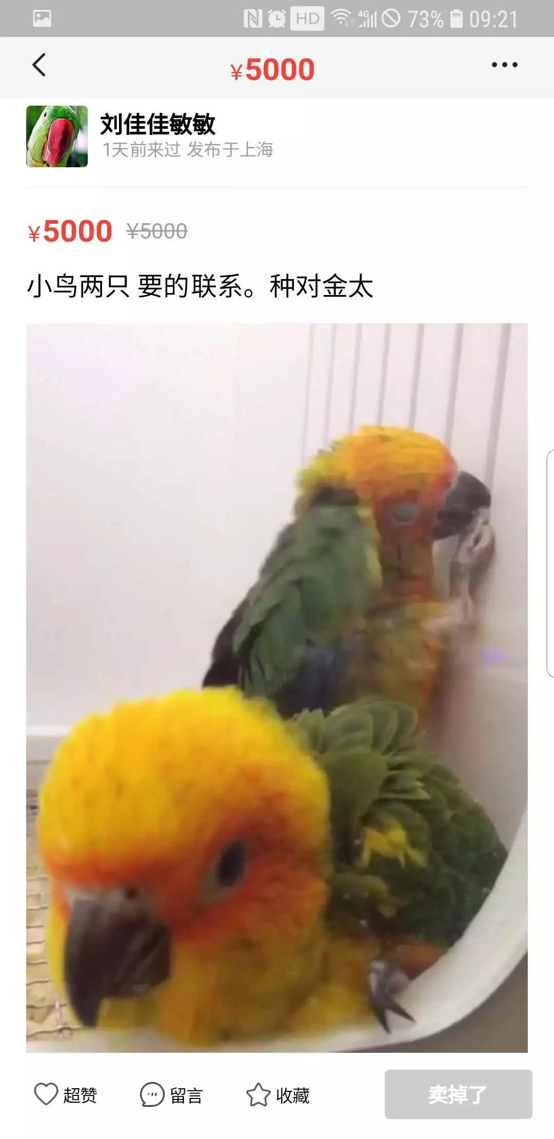 白尾海雕、金太阳鹦鹉 网友举报“闲鱼”上交易保护动物