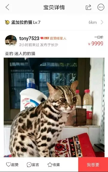 无独有偶,同样是在微博上,另一名网友爆料称,虽然举报多次,在“闲鱼”上仍看到有多个卖家在售卖野生豹猫。在国家林业局发布的《国家保护的有益的或者有重要经济、科学研究价值的陆生野生动物名录》中,豹猫属于“三有”保护动物,即国家保护的有重要生态、科学、社会价值的陆生野生动物。