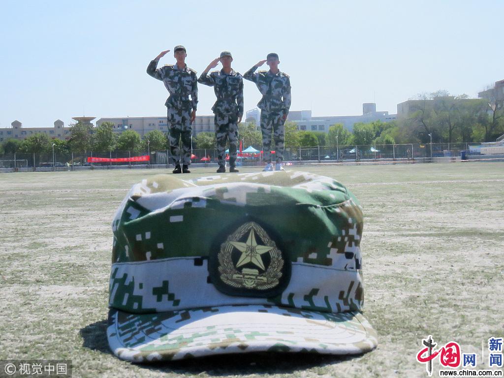 山东德州大学生拍摄创意照片 “玩转”军训