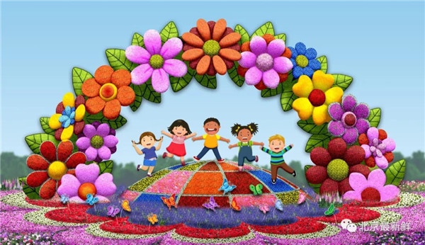 ▲东单东南角花坛的主题为“共赢中国”。花坛以世界各国儿童欢聚一起为主景,诠释了中国同世界各国合作共赢,携手构建更加紧密的人类命运共同体,共创美好明天的美好祝愿。