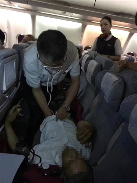 今年6月9日晚9时,在一架从北京飞往温州的国航CA1539航班上,一位乘客心跳骤停。