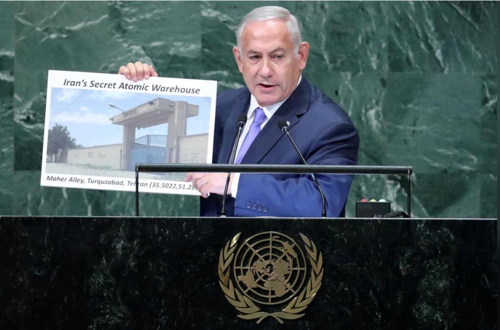 “伊朗在德黑兰拥有秘密核设施。”内塔尼亚胡26日在联大上指控宿敌伊朗窝藏秘密核设施和仓库,还公布了一张所谓的“秘密核设施”大门照片。