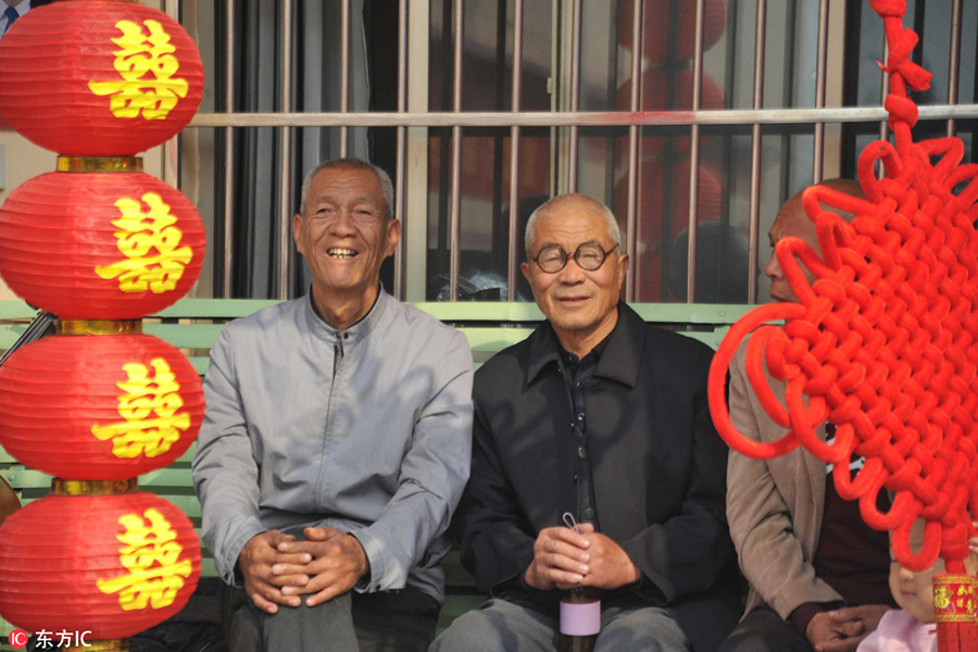 2018年10月16日,山西新绛,在“回汉民族第一村”山西运城市新绛县龙兴镇西关村第十届重阳节联谊会上,老人们在观看异彩纷呈的敬老爱老文艺节目。高新生/东方IC
