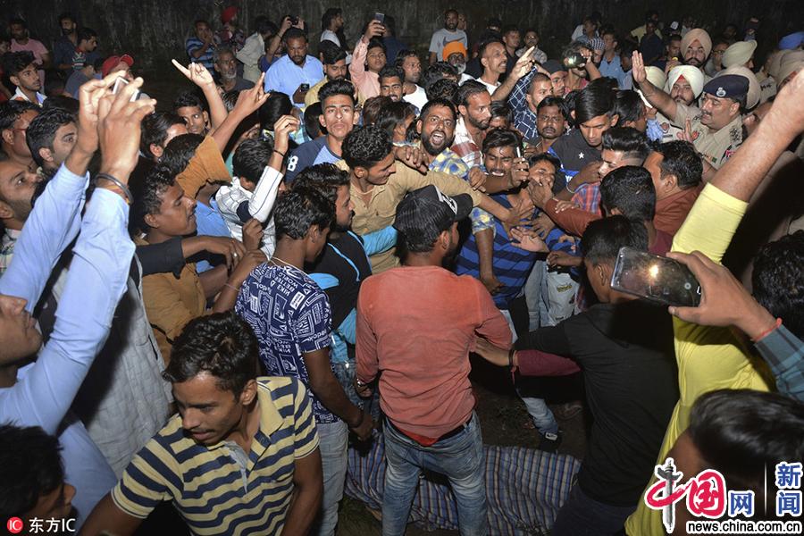 当地时间2018年10月19日,印度阿姆利则,当地发生一起火车撞人事件,造成至少50人死亡,大部分为妇女和儿童,另有多人受伤。据报道,一列火车冲入正在举行宗教庆祝活动的人群,当时人们聚集在铁轨上,因庆祝活动声音巨大,所以未听到火车的鸣笛。报道称,超过1000人参加了当天的宗教庆祝活动,死亡人数或将进一步上升。Prabhjot Gill/东方IC