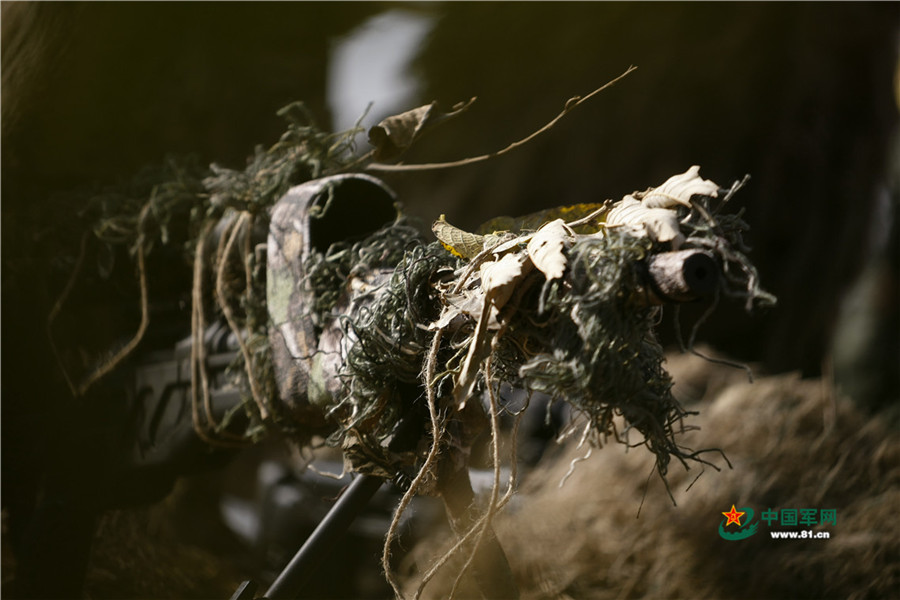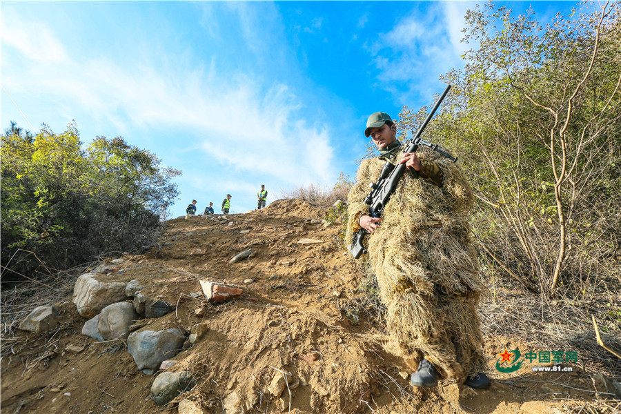 潜伏狙击课目中,参赛选手伪装隐蔽。安晓惠 摄