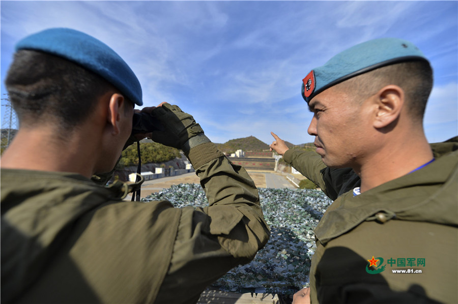 价值目标选择狙击课目中,参赛队员在观察测距。王涛 摄