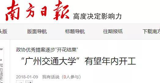 今年8月30日,第十四届穗台校长论坛在广州举行。南方日报记者从会上获悉:广州将投入百亿元创办广州交通大学。目前,筹建工作已经展开,规划用地1000亩,计划2020年启动招生。