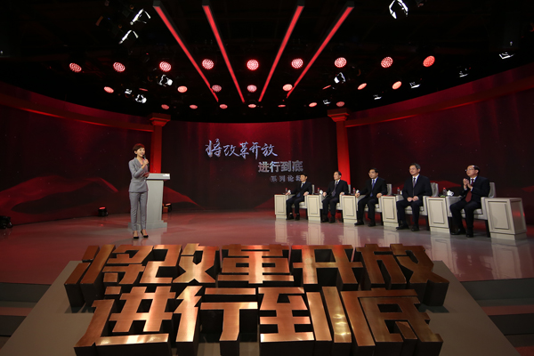 “将改革开放进行到底”系列论坛第一场论坛现场。(图片来源:央视网 刘会成 摄)