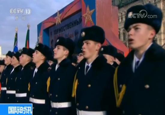 来自俄罗斯现役部队、军校学生和军事爱国俱乐部成员等约5000人组成的方队依次通过红场。(展示)其中的骑兵方阵、雪地士兵方阵颇具特色。