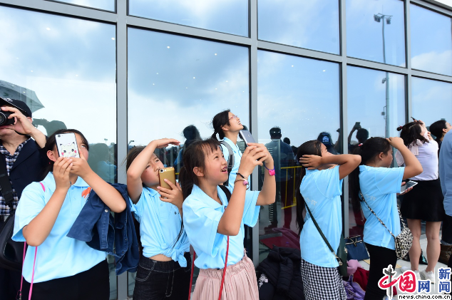 11日是博览会公众开放日,会场上空上演了激动人心的飞行表演,这是此次冬令营的压轴节目。孩子们仰望蓝天,微张着小嘴,被深深震撼:一架架飞机伴着巨大的轰鸣从头顶掠过,有的排着人字形的整齐队列;有的相向而行,擦肩而过的瞬间动人心魄;有的在观众席上方向四面八方飞去,机尾喷出的彩色烟雾带犹如盛开的花朵。当四架万众瞩目的中国空军“歼20”战机编队穿过云霄,孩子们不由地发出一串惊呼:“太帅了!”“声音好大!”“太惊彩了!”……