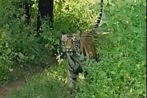 海外网11月12日电近日,印度一群游客在马哈拉施特拉邦的塔斗巴国家公园游玩时,被母老虎追逐,场面十分惊险,而导游却说“老虎只是在玩”。