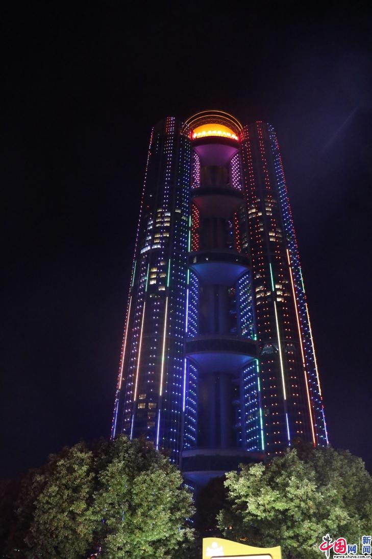 夜晚中的华西龙希国际大酒店。据介绍该酒店高328米,共72层。(中国网记者 黄磊/摄)