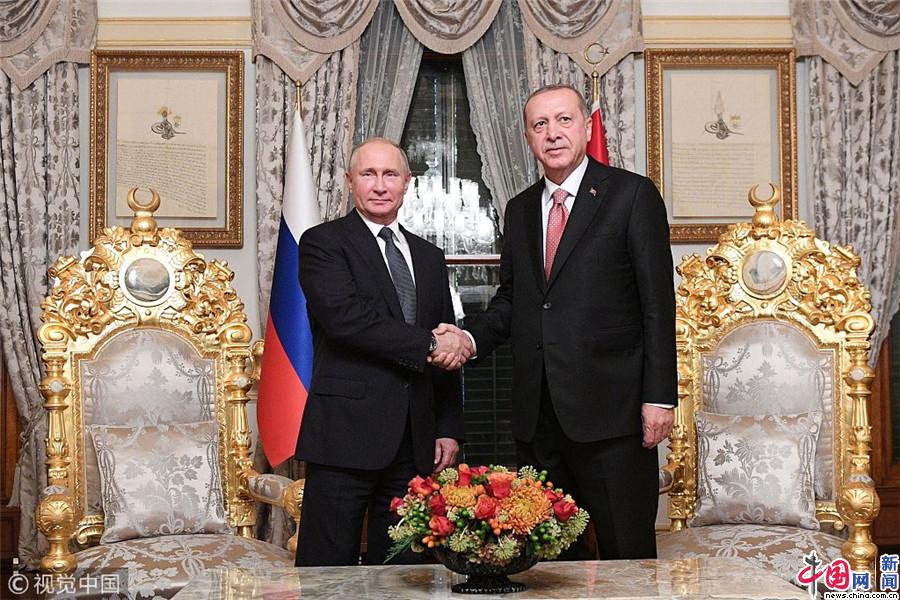 当地时间2018年11月19日,土耳其伊斯坦布尔,土耳其总统埃尔多安与俄罗斯总统普京举行会晤。RAMIL SITDIKOV /视觉中国