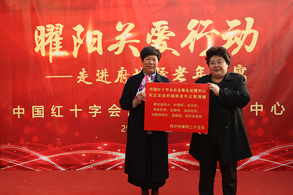 中国红十字会总会事业发展中心向正定县府城驿老年公寓捐赠养老设备和物资。