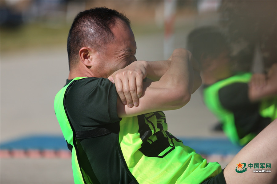 仰卧起坐考核,每一次动作都不留余力。胡程 摄