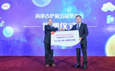 伊利集团副总裁张轶鹏代表伊利集团向中国儿童少年基金会“未来公园”公益项目捐赠200万元人民币。