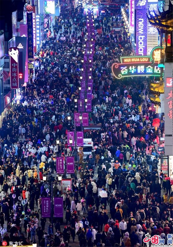 2018年12月24日,辽宁沈阳,平安夜,万人涌进沈阳著名商业街-中街,人满为患,沈阳公安等部门上街执勤,确保市民出行安全。沈阳/东方IC