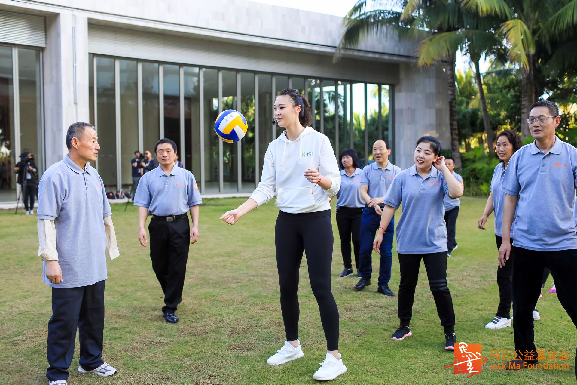 2019年1月13日,海南陵水,中国女排队员、奥运冠军、惠基金发起人惠若琪参加2018马云乡村教师年度颁奖典礼的“重回课堂”活动,给前来领奖的乡村教师们上了一堂排球课,讲述体育之美。马云公益基金会 供图