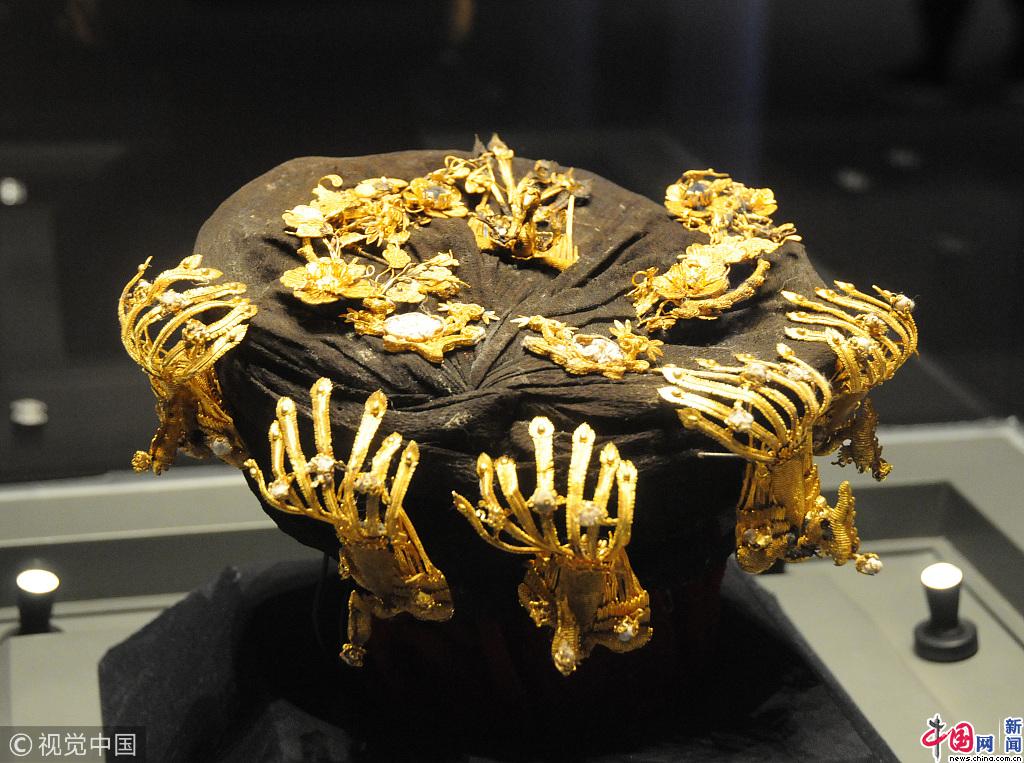2019年1月15日,北京,《众志成城 守护文明——全国打击防范文物犯罪成果展》正在中国国家博物馆举办。图为河北唐山清东陵被盗系列案追缴国家三级文物:清,康熙帝温僖贵妃的冠饰。杜佳/视觉中国