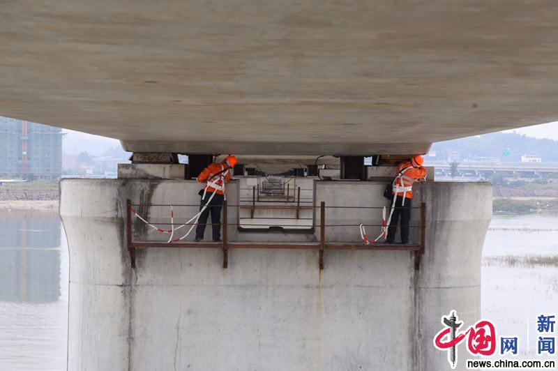 图为海面风大浪高,凌空作业一定要系好安全带确保安全。