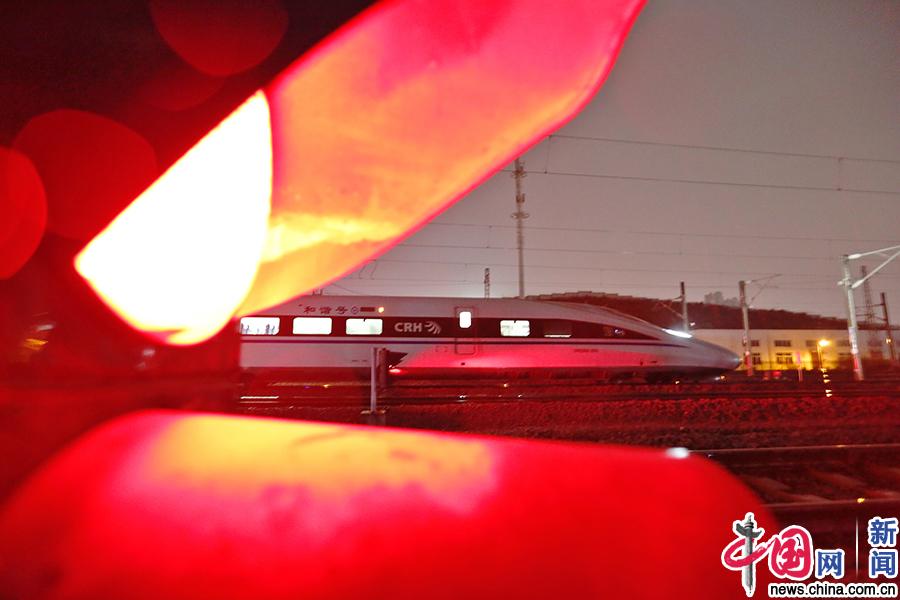 一列完成检修的动车组,缓缓驶入存车线。中国网发 丁波/摄