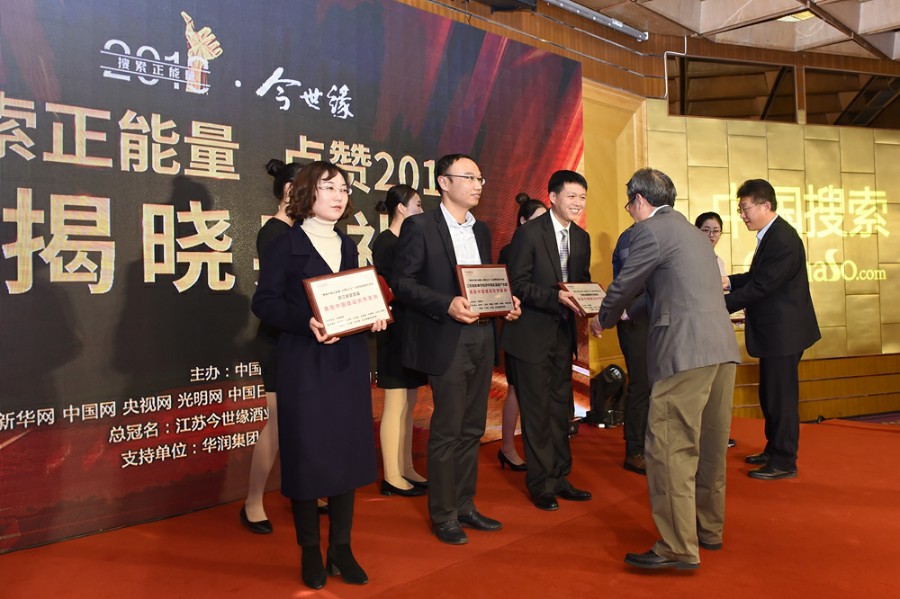 “搜索正能量 点赞2018”大型网络宣传活动揭晓典礼今天在北京举行。现场揭晓了展现2018年中国发展进步的新闻热词、感动人物、精彩故事等榜单,并启动政务搜索服务平台。图为活动现场颁奖仪式。中国搜索宋家儒 摄