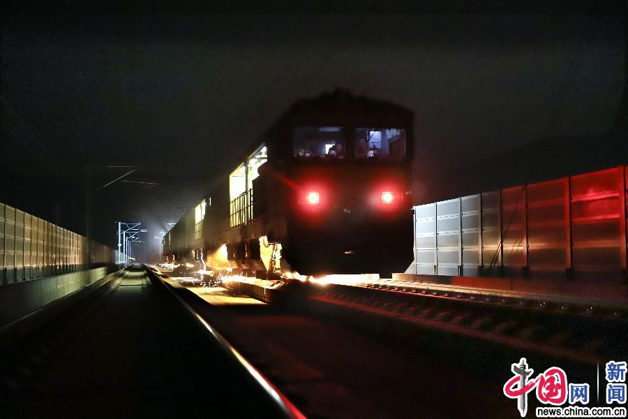 打磨车在施工区段打磨作业。(中国网发 郭永良/摄)
